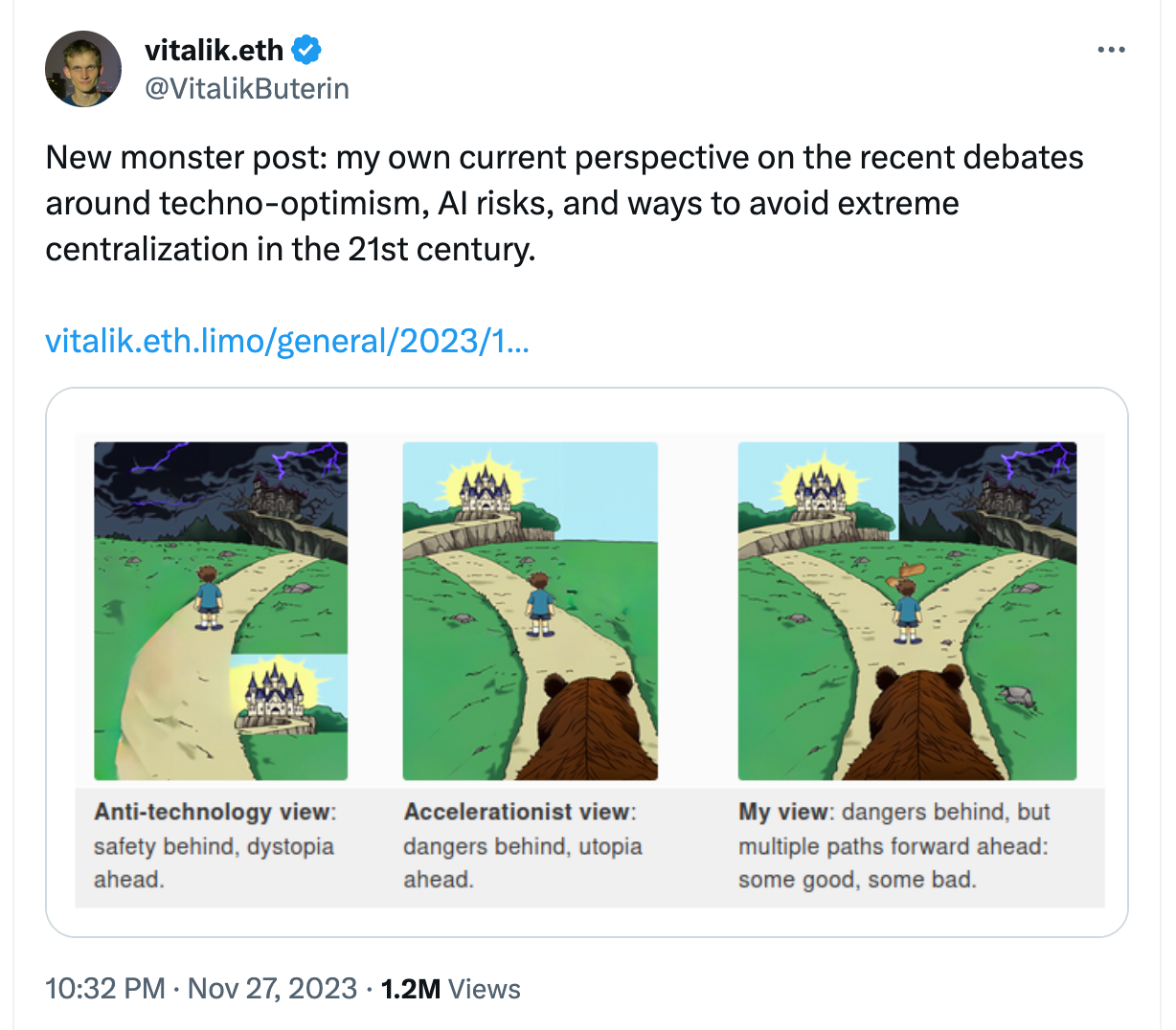 It's in this whirl of uncertainty that Ethereum's Vitalik Buterin steps up, delivering a timely "monster post" about AI & the concept of "Techno Optimism", described some time ago by A16Z.
