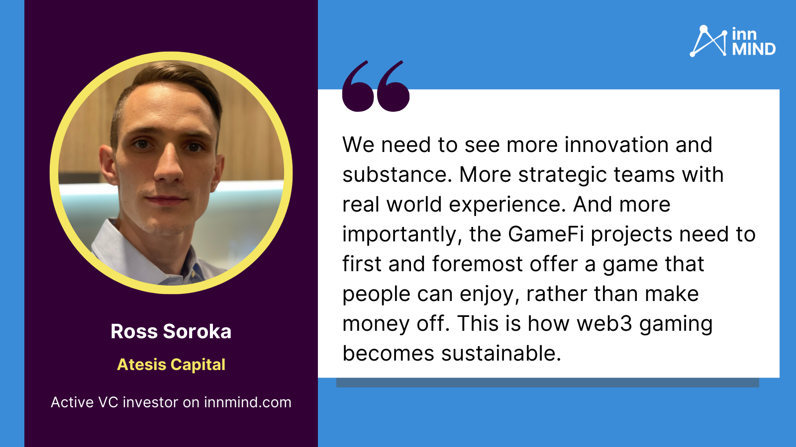 If you want to learn more about investing in GameFi and presenting startups to investors, join InnMind's online pitching sessions. There you can learn how companies present their projects, what VC’s want from crypto companies, and a lot of other useful information.