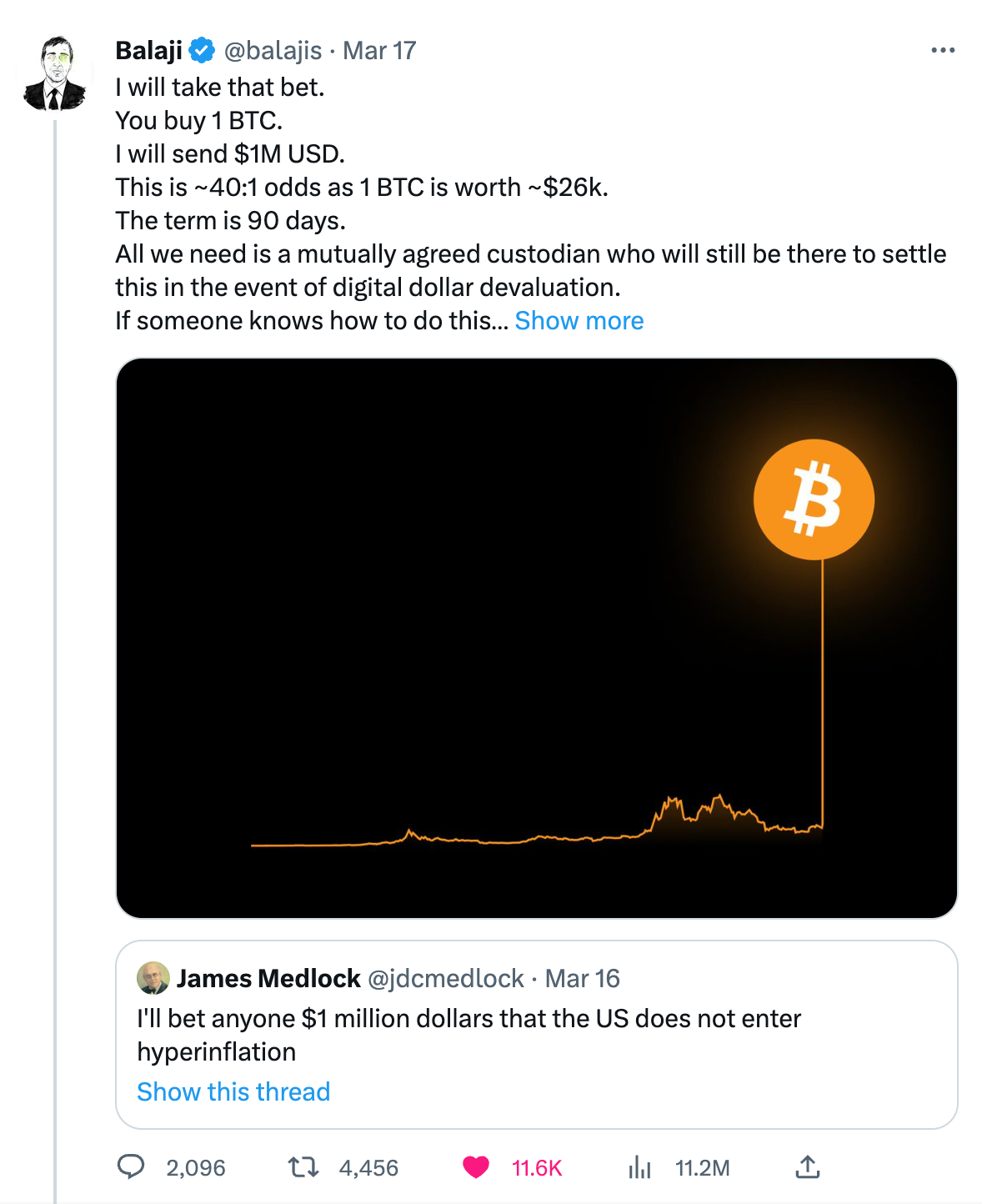 So, it’s Balaji vs James – in the battle for $1 million or 1 BTC.