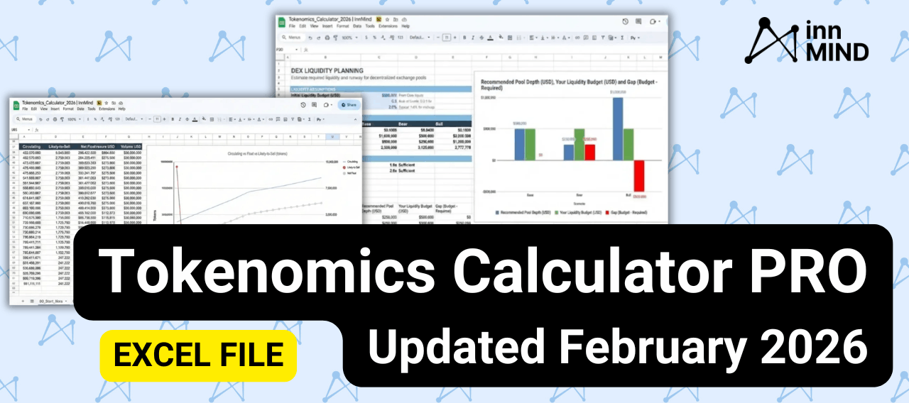 The 07_Scenarios tab in the InnMind Tokenomics Calculator 2026 switches between Base, Bear, and Bull with a single input cell. Every module updates automatically: sell pressure, volume absorption, liquidity planning, inflation rate. You can flip scenarios in seconds during a pitch to show you have already run the stress tests.